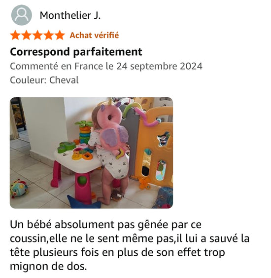 Le sac est conçu comme un amorti épais qui absorbe les chocs sur la tête et le dos. Il réduit les risques de blessures lors des premiers pas et explorations de bébé mais ne remplace pas la vigilance des parents.